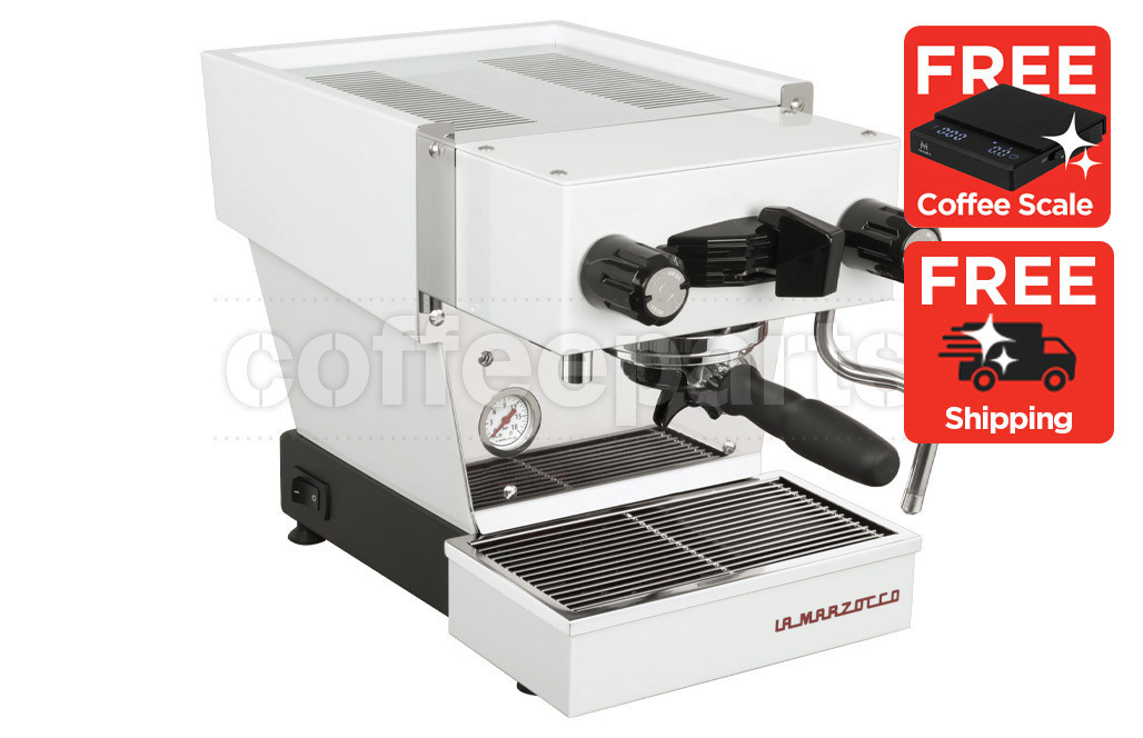 Its clean White panels pair well with light benches, while the stainless accents keep the classic La Marzocco look.