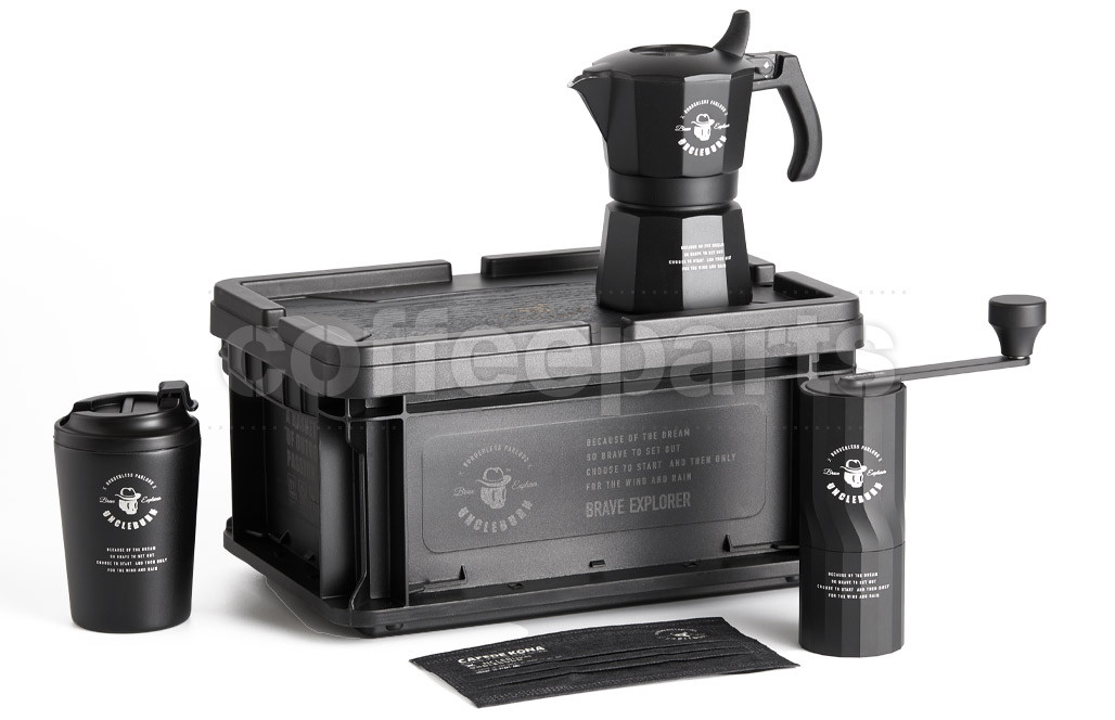 The Cafe de Kona X Uncle Burn Moka Coffee Set is a meticulously curated ensemble designed for coffee enthusiasts who crave quality brews on the go. This comprehensive set includes a 2-cup Moka pot, a manual hand grinder, a double-insulated stainless steel travel cup, and a durable storage case, ensuring you have everything needed to enjoy rich, authentic coffee anywhere your adventures take you.